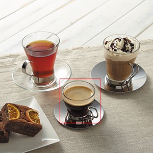 | スペック | 口径6.7(最大幅9.1)×高さ6.2cm/100ml/〈グラス〉ソーダガラス(全面物理強化)〈ホルダー〉スチール(クロムメッキ) |
