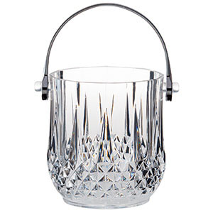ガラスのような透明度とカット風デザインの煌めきがひときわゴージャス。高級感あふれるアクリル製。 ※アイストング、水切り、蓋兼受け皿は付属しておりません。 |