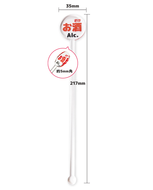 | 商品説明 | 一目でアルコールドリンクであることがわかるマドラー。お客様側での誤飲防止はもちろん、わかりやすく表示することで、ドリンクを作る際の間違い防止にも役立ちます。 |